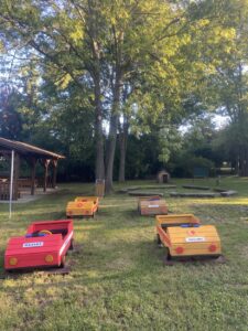 která skrývá mnoho zákoutí, které učitelky s dětmi využívají ke vzdělávání, i velkou hrací plochu plnou moderních hracích prvků, které děti velmi baví.